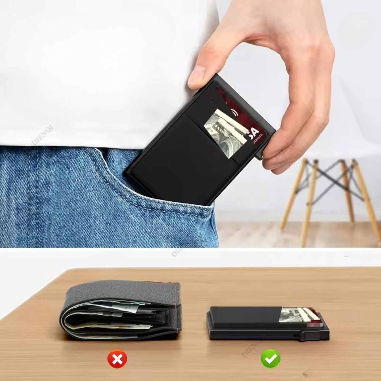 Instantly access your cards with a smooth one-finger slide while enjoying advanced RFID protection and compact, reliable storage.